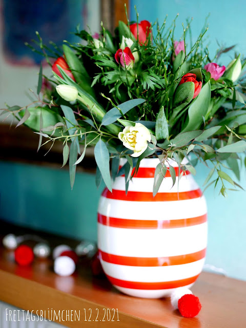 AntwortenLöschenYour vase is so joyful and fits perfect to the bouquet. Thank you for this eye candy and joy in these dull colorless February days. Wishing you a Happy Valentine's Day!